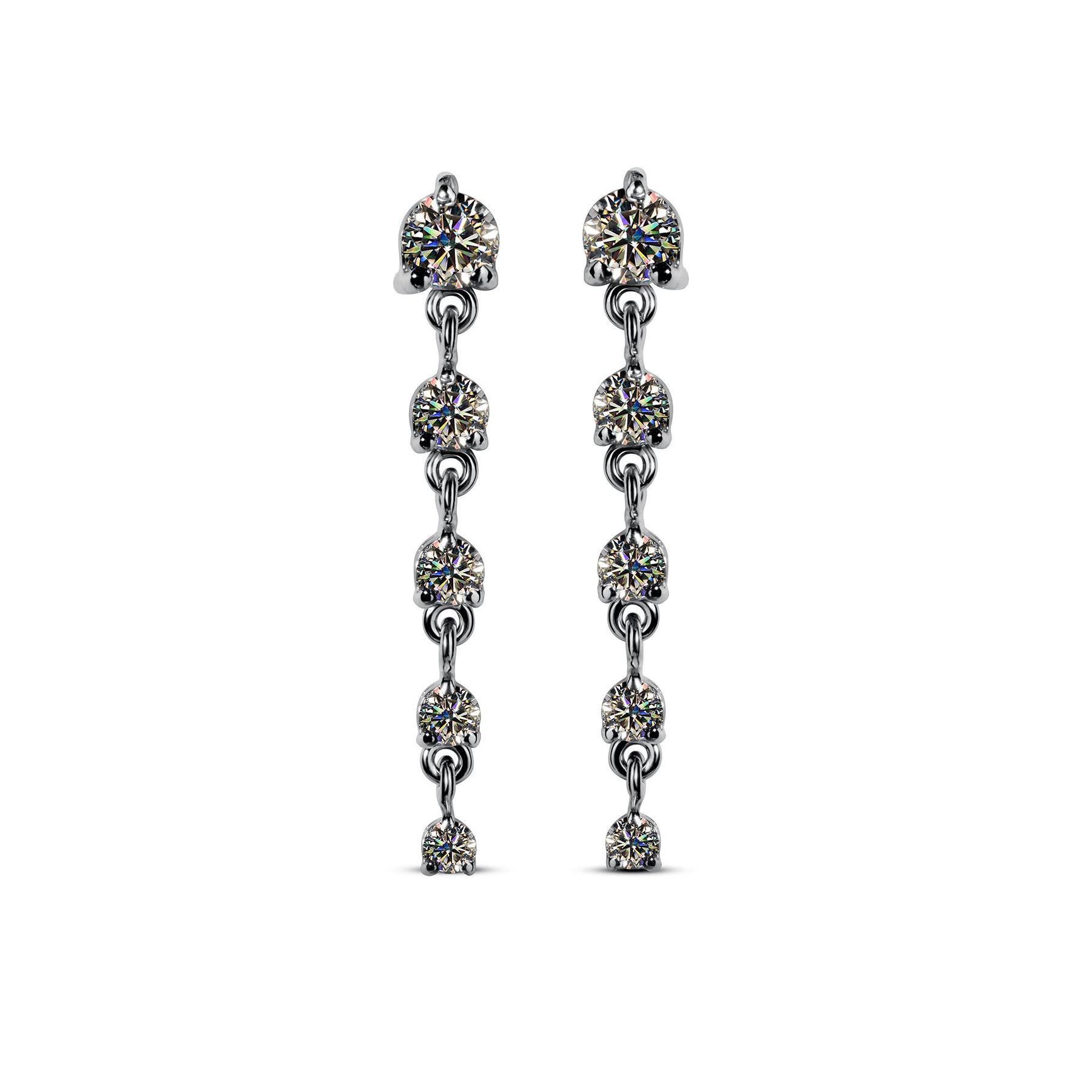 Elysian Fall Moissanite Drop Earrings are elegant moissanite earrings for women, featuring a cascading design with a 1 carat moissanite complemented by 0.25 ct, 0.15 ct, and 0.09 ct stones for refined brilliance and movement. These moissanite drop earrings offer a luxurious diamond-like sparkle, making them ideal as long moissanite earrings for bridal and formal wear